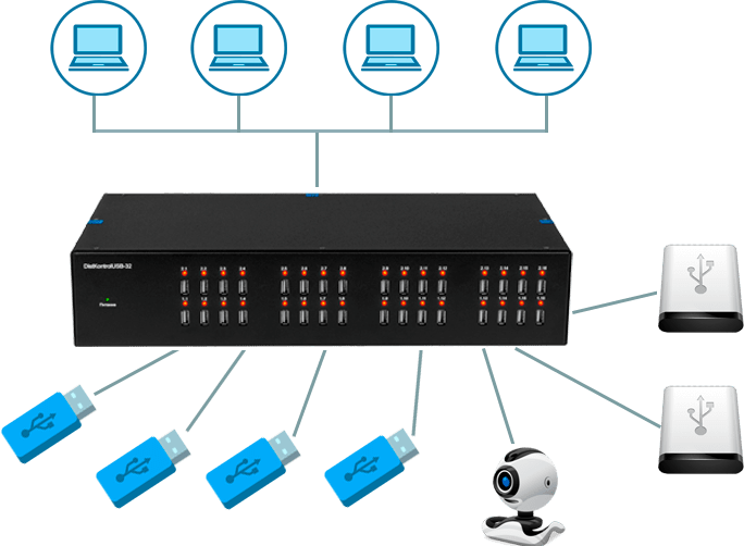 Управляемый USB over IP концентратор обеспечивает двухступенчатую защиту USB устройств при совместном использовании USB по сети: